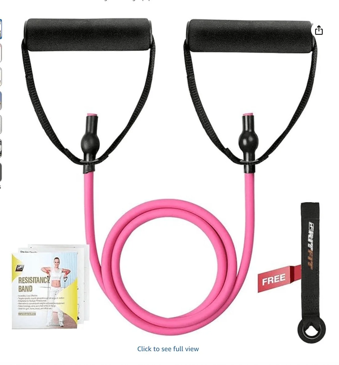 This set of resistance bands includes five different colors — each representing different stretching forces (3-20 lbs). Each color is suitable for different exercise levels and different exercise purposes.