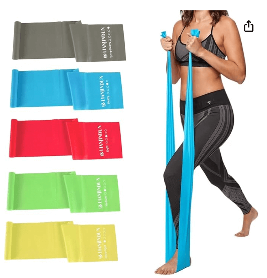 Made of natural rubber, this set features5 Pilates Flexbands for stretching and strength training. Suitable for a variety of exercises including yoga, physical therapy, and Pilates.