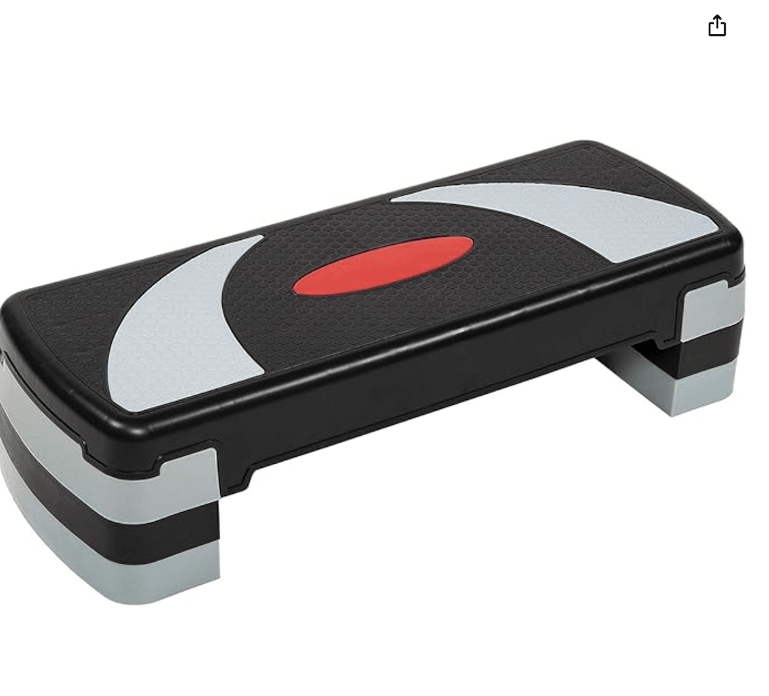 The textured, non‑slip surface absorbs shock to keep you stable with every step. Included risers let you easily adjust the platform to your perfect height. Alternative: use stairs in your home.
